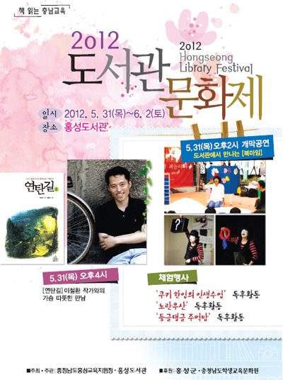홍성도서관은 오는 31일부터 6월 2일까지 3일간 ‘책읽는 소리, 홍성을 두드리다’를 주제로 도서관과 만나는 즐거운 ’2012 홍성도서관문화제‘를 개최한다.