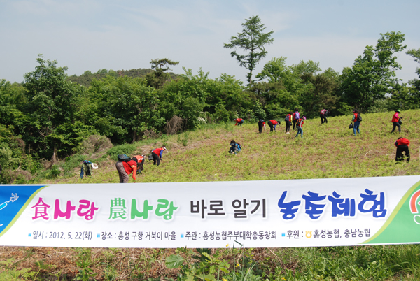 ‘식사랑 농사랑’ 바로알기 농촌체험행사가 홍성농협과 충남농협 후원, 주부대학 총동창회 주관으로 지난 22일 구항면 내현리 거북이마을에서 열렸다.