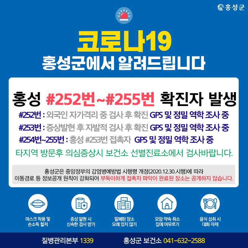 홍성 #252~ #255번 확진자 발생