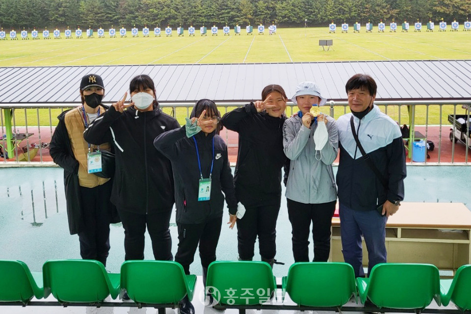 홍성여자고등학교(교장 심상용) 1학년 한솔 선수가 지난 11일 경북 예천군 진호양궁장에서 실시된 전국체전 양궁 여고부 개인 결승전에서 광주체육고등학교 조민서 선수를 세트스코어 7-3(26-28 29-29 29-28 28-27 29-28)으로 누르고 금메달을 목에 걸었다.