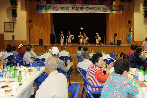 홍성고등학교(교장 서종완)는 지난 18일 오전 11시부터 학교가 소재한 대교리 주민 등 300여명을 초청해 효실천 경로잔치 행사를 열었다.