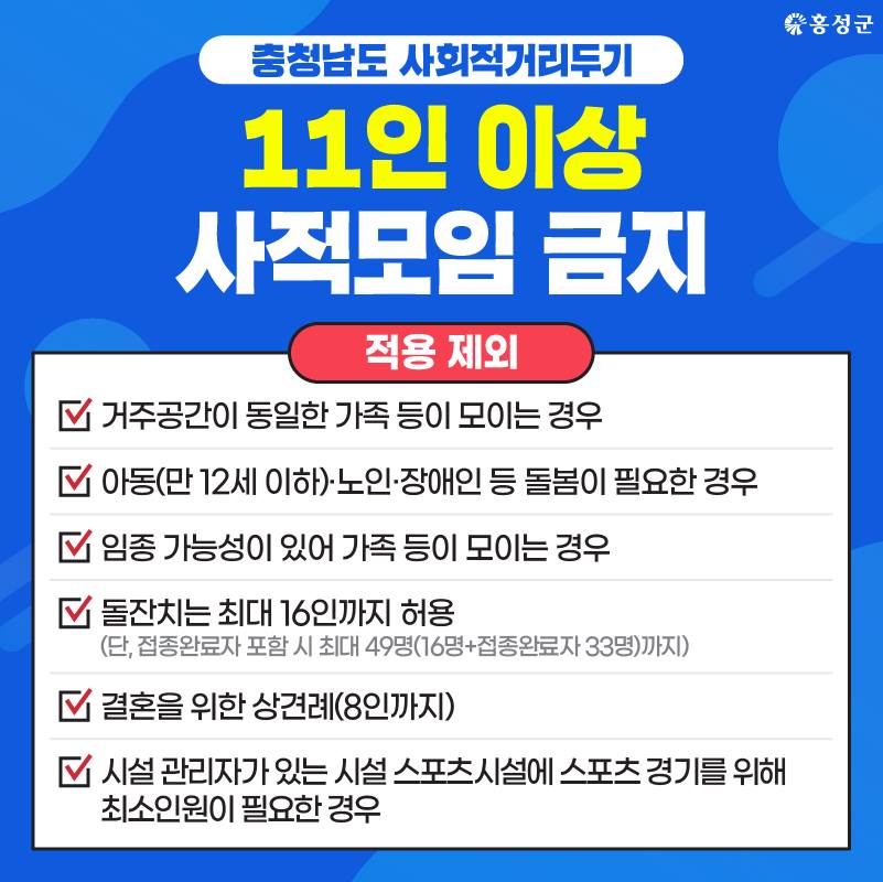 • 사적 모임 : 접종 미완료자 최대 4명 포함 10명 가능