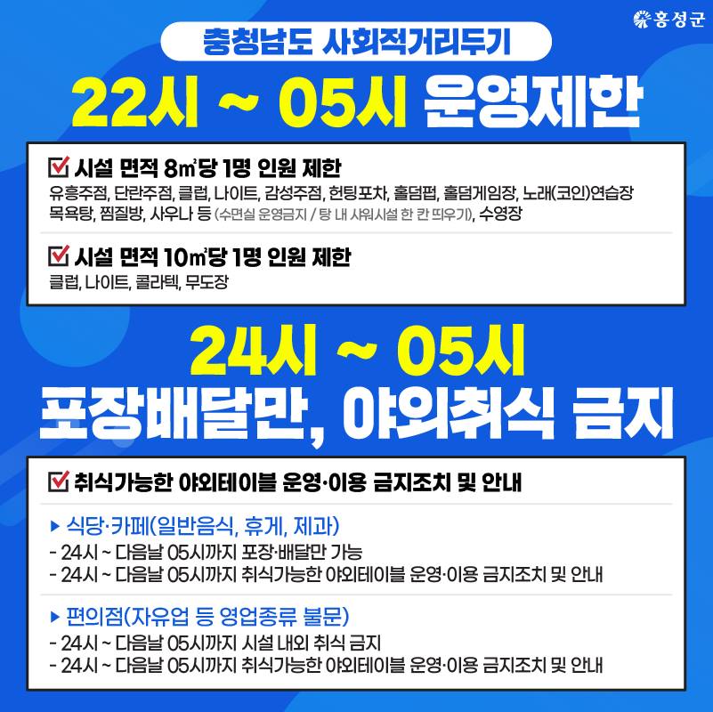 • 식당·카페 : 24시 ~ 다음날 05시까지 포장·배달만 가능