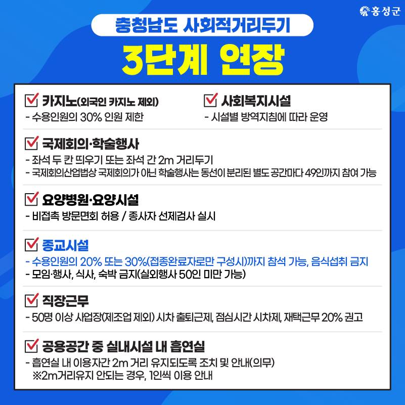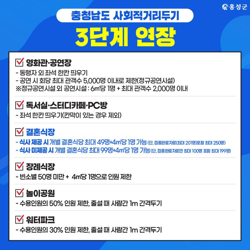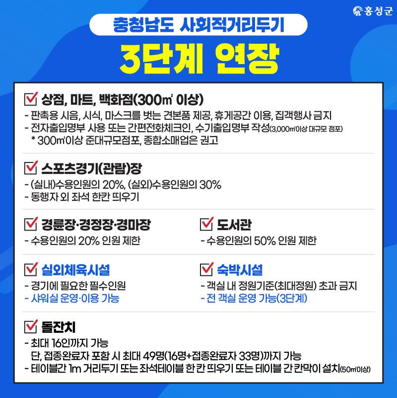 그 밖에 행사와 다중이용시설에 대한 방역수칙은 단계별 강화된 방역수칙 참고하세요!