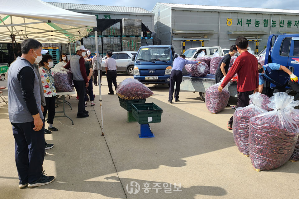 서부농협(조합장 표경덕)이 올해 고추농사 풍작으로 판로를 찾지 못하는 지역 농민들의 농산물을 시세보다 높은 가격으로 수매하는 등 농가소득 증대에 기여하고 있다.<사진>