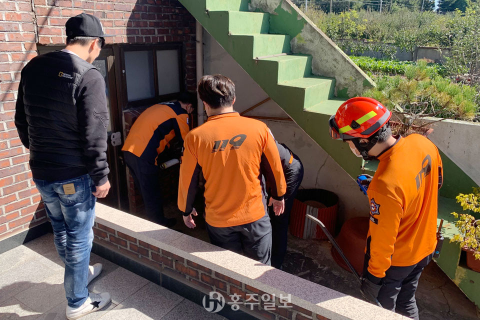 홍성읍남성의용소방대(대장 박성완)는 지난 17일 홍성읍 소향리와 월산리 일원 마을회관 등을 대상으로 마을담당제 활동을 실시했다. 특히 이날 소향1구 마을에서 한 주민이 벌집을 제거해달라는 요청에 마을담당제 활동을 실시하고 있던 대원들은 소방서와 협조해 벌집을 제거하는 활동을 펼쳤다.