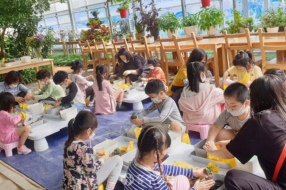 군은 지난 상반기 관내 10개 초등학교를 대상으로 공기 정화 식물 심고 가꾸는 ‘제1기 어린이 농업교실’을 운영했으며 이번 농업교실에서는 유리 용기에 식물을 재배하는 ‘테라리엄’ 만들기 프로그램을 구성해 참가한 어린이들의 만족도를 높였다.