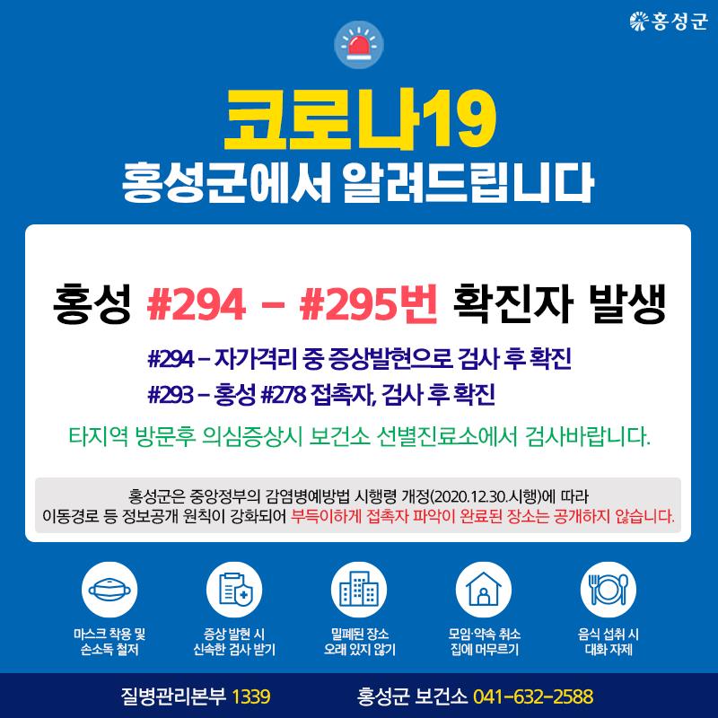 홍성 #294 - #295번 확진자 발생
