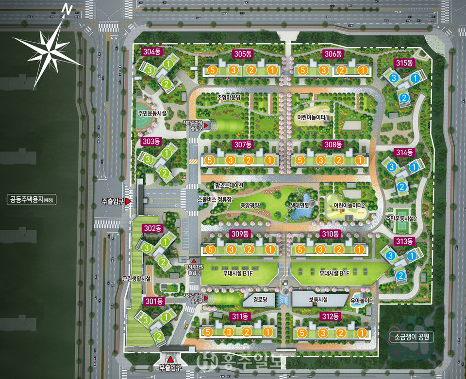 또, 하나로마트, 고속시외버스터미널, 메가박스, 충남도서관 등 다양한 생활편의시설이 인접해 있다. 이에 더해 수암체육공원, 수암천공원, 홍예공원 등 녹지공간이 가까워 쾌적한 주거여건을 확보했다.