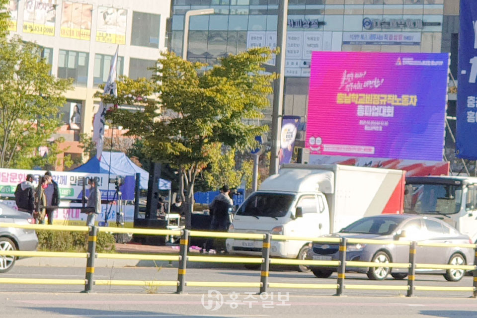 전국학교비정규직노동조합 충남지부(지부장 이영남)는 지난 20일 △급식실 인원 충원 △돌봄교실 8시간 확대 △학교의 교육복지 기능 강화 △국회와 교육감의 차별해소 예산 편성 등을 주장하는 총파업에 참여했다.<사진>