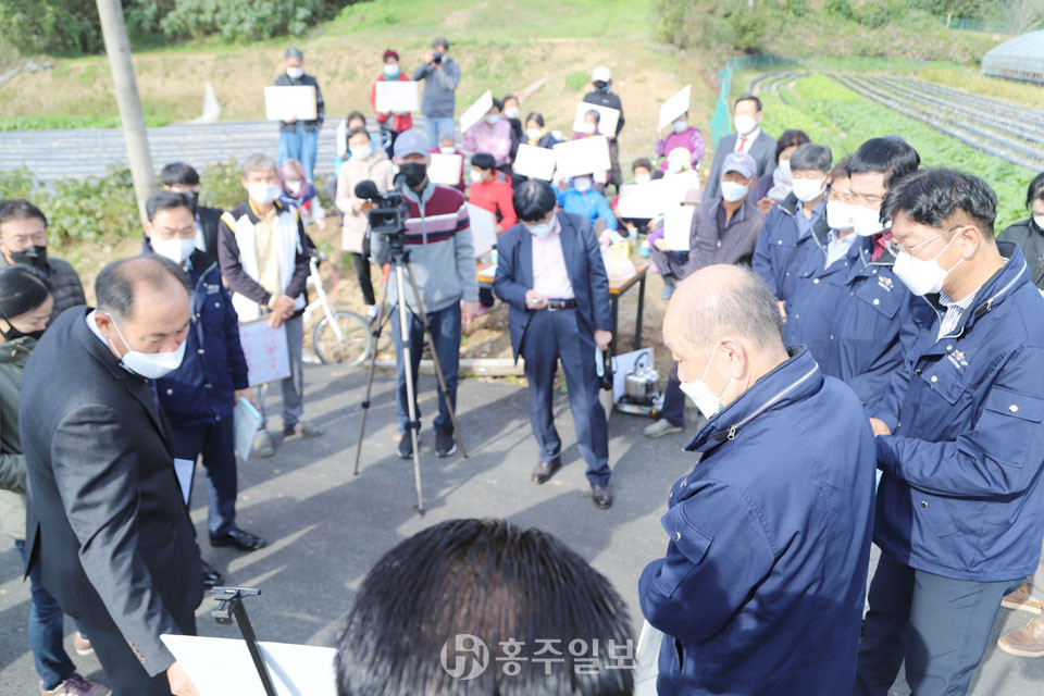 홍성군의회는 지난 21일 와야마을을 방문해 환경과의 입장과 마을 주민들의 목소리를 들었다. 현장답사에는 마을 주민 20여 명이 생업을 뒤로하고 자리를 함께 해 우사 관련 사안에 대한 인근 주민들의 깊은 관심을 나타냈다.
