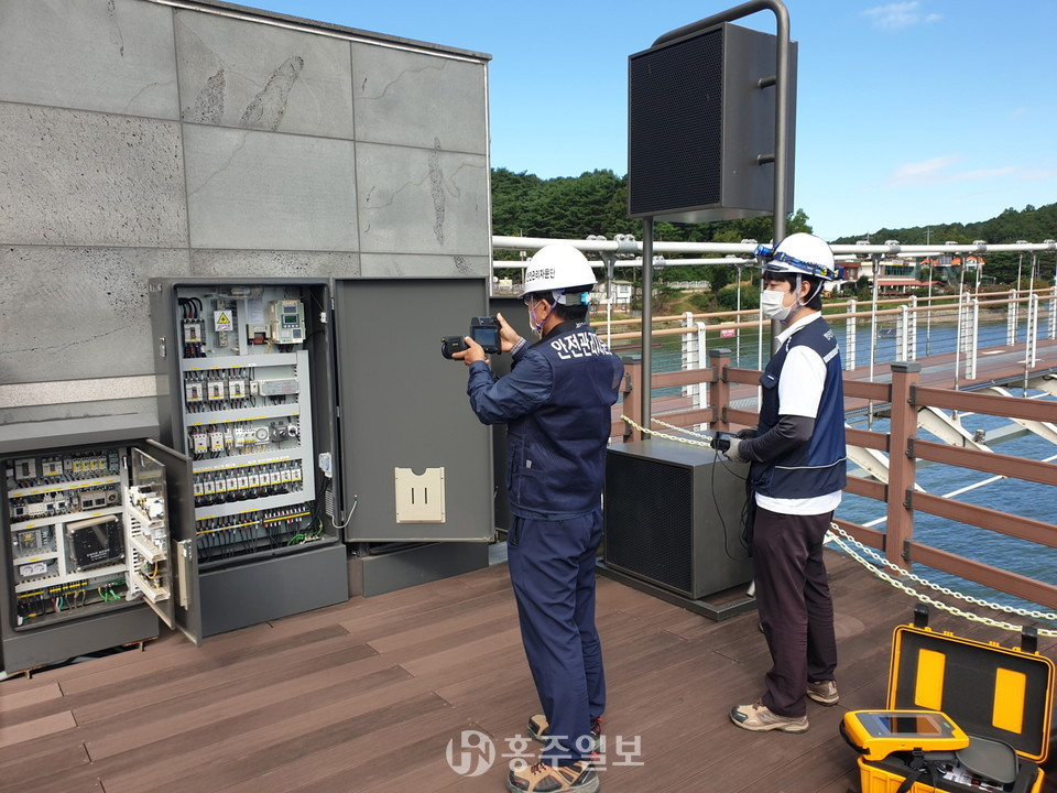 아울러 첨단장비인 드론을 활용해 교량 케이블, 바닥 프레임 등 육안으로 점검이 어려운 사각지대까지 면밀하게 안전점검을 실시했으며, 이번 점검으로 예당호 출렁다리는 충남도에서도 인증하는 안전시설로 자리매김했다.