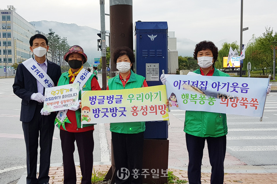 홍북읍(읍장 안기억)은 지난 8일 충남교육청 사거리 일대에서 ‘아이들의 행복한 웃음소리 홍성의 미래입니다’ 슬로건 아래 출산장려·내고장 주민등록 갖기 캠페인을 실시했다.<사진>