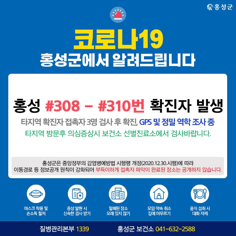 홍성 #308번 - #310번 확진자 발생