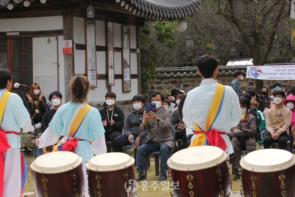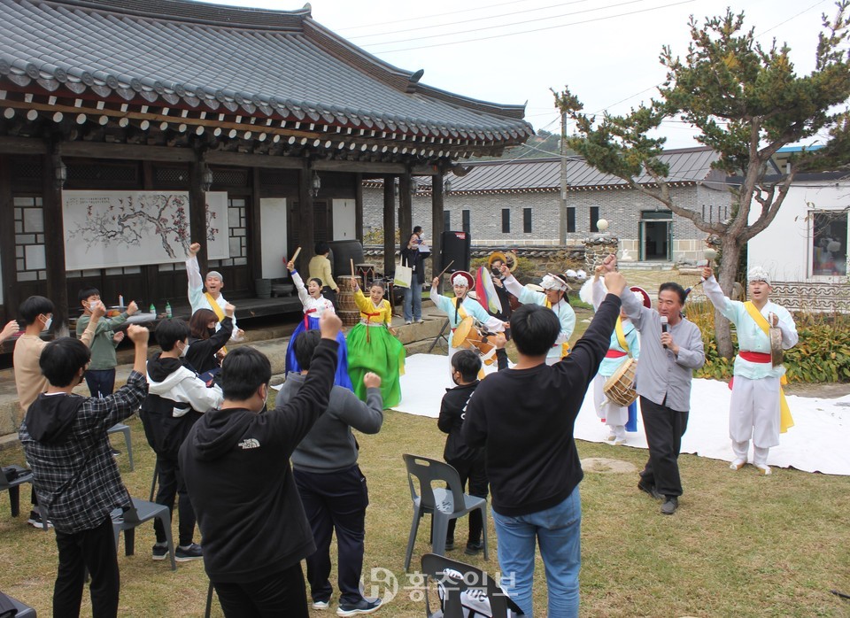 이날 한국식기박물관의 뒤뜰은 홍성중학교, 홍성여자중학교, 갈산중학교 등 관내 청소년들을 비롯해 타지에서 온 가족단위 관람객 등 수많은 인파가 몰려 북적였고 문화예술 사회적기업인 잔치마당예술단(단장 서광일)의 축원비나리를 시작으로 모듬북난타, 국가무형문화재 제5호 춘향가 중 사랑가, 진도 아리랑, 전남도무형문화재 18호인 진도북춤과 국가무형문화재 제3호 남사당 판굿과 버나놀이 공연이 이어졌다.