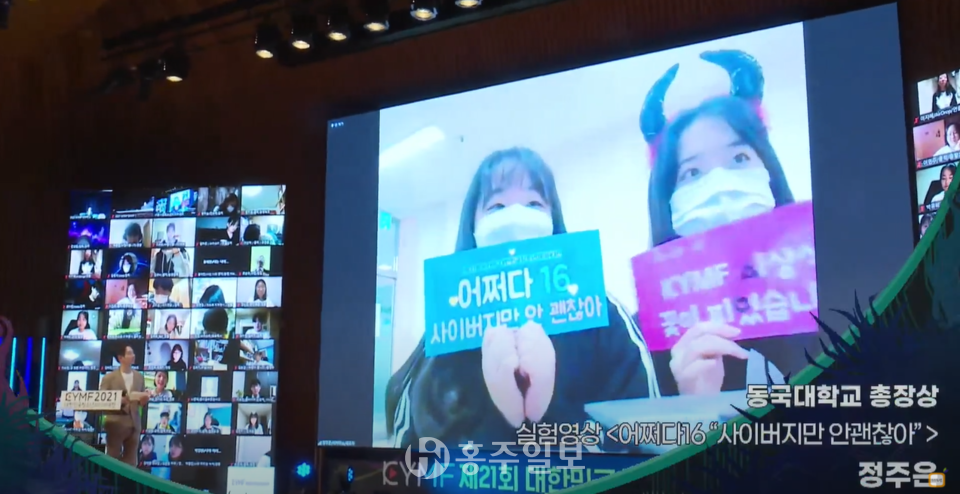 정주은(예화여고 1) ‘늘품’ 회장은 “평소에 영상을 촬영하고 편집한 경험이 없었는데 이번 활동으로 좋은 경험을 쌓았다”며 “이번 작품을 계기로 대중들이 사이버 폭력은 쉽게 넘길 수 있는 문제가 아닌 모두가 해결해 나가야할 문제로 느꼈으면 한다”라고 수상 소감을 전했다.