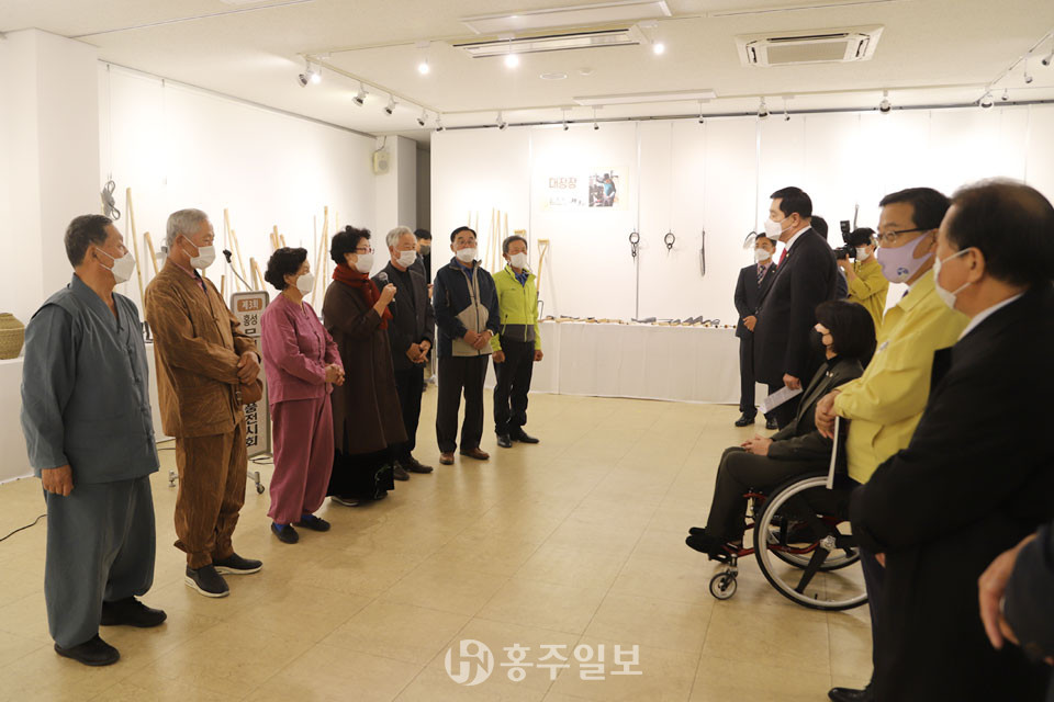 유환동 원장은 “홍성문화원은 우리 고장의 소중한 무형문화재 기능보유자와 전수자들의 고귀한 작품을 한자리에 모아 전시해 지역주민들에게 무형문화재의 소중함을 널리 알리고 전통문화를 계승 발전시켜나가는데 힘쓰고 있다”며 “이번 전시회를 통해 코로나19로 어려움을 겪고 있는 문화예술인들의 마음을 위로하고 격려하는 계기가 되고 우리 지역 문화예술발전에도 기여할 수 있기를 소망한다”고 말했다.