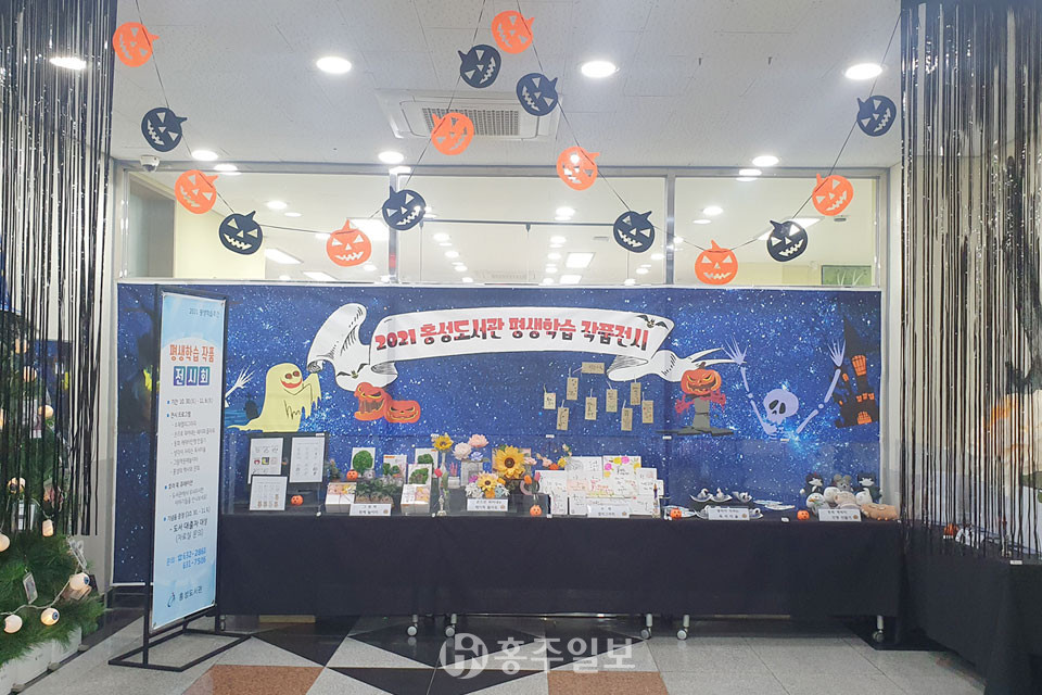 특히 수강생들이 평생교육 프로그램을 수강하며 만든 캘리그라피 작품과 페이퍼플라워, 동화 캐릭터 인형 등이 핼러윈 장식과 함께 전시되고 있어 많은 관심을 받고 있다.