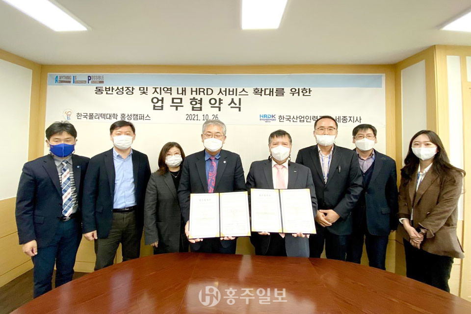 한국폴리텍대학 홍성캠퍼스(학장 장우영)은 지난달 26일 대학본부 2층 회의실에서 한국산업인력공단 세종지사(지사장 김준태)와 ‘동반성장 및 지역 내 HRD 서비스 확대를 위한 업무협약’을 체결했다.