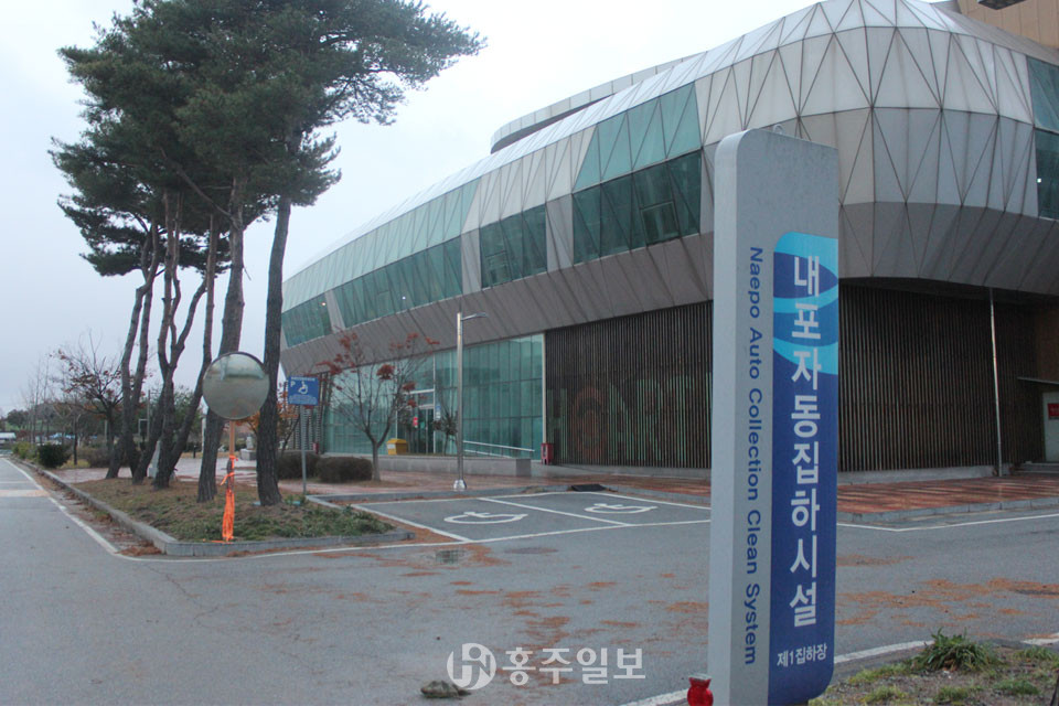 내포신도시에 조성된 쓰레기자동집하시설은 쓰레기 투입구가 종류별 2개로 나뉘어있지만 관로는 하나만 만들어 관로를 별도로 설치하도록 규정한 환경부지침에 저촉돼 지금은 일반쓰레기만 수거되고 있다.