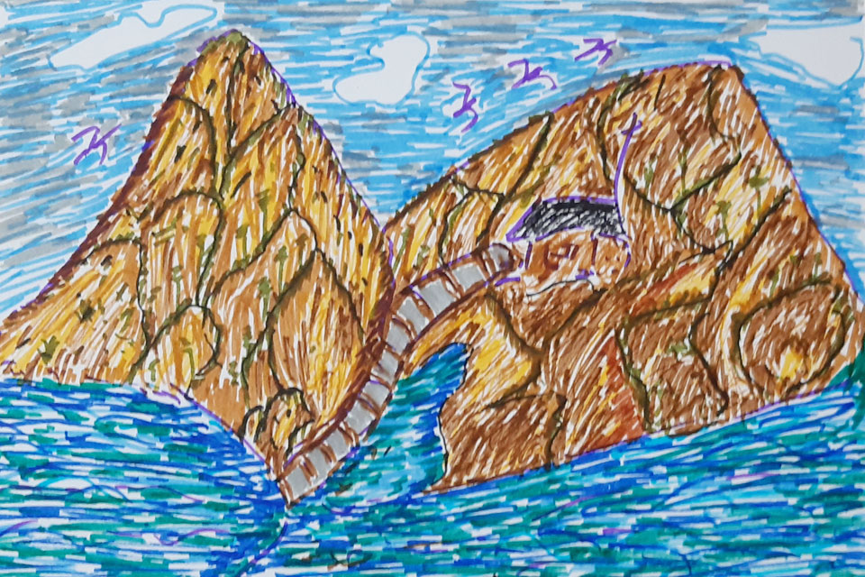 정문희 이장님이 그리신 그림을 보면 독도의 바람과 넘실대는 물결이 더욱더 선명하게 보인다. 섬은 옹골차게 서 있고 섬 가운데에 가파른 계단이 나 있다. 섬 사이에 깊게 파인 주름이 독도가 견딘 시련의 세월을 말해주는 것도 같다. 독도야! 간밤에 잘 잤느냐?