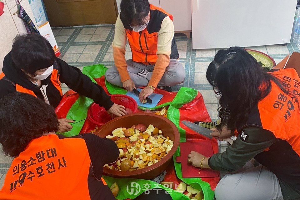 삽교읍여성의용소방대(대장 김한순)가 지난 11일 오전 관내 취약계층을 위해 반찬나눔 봉사활동을 했다고 전했다.<사진>