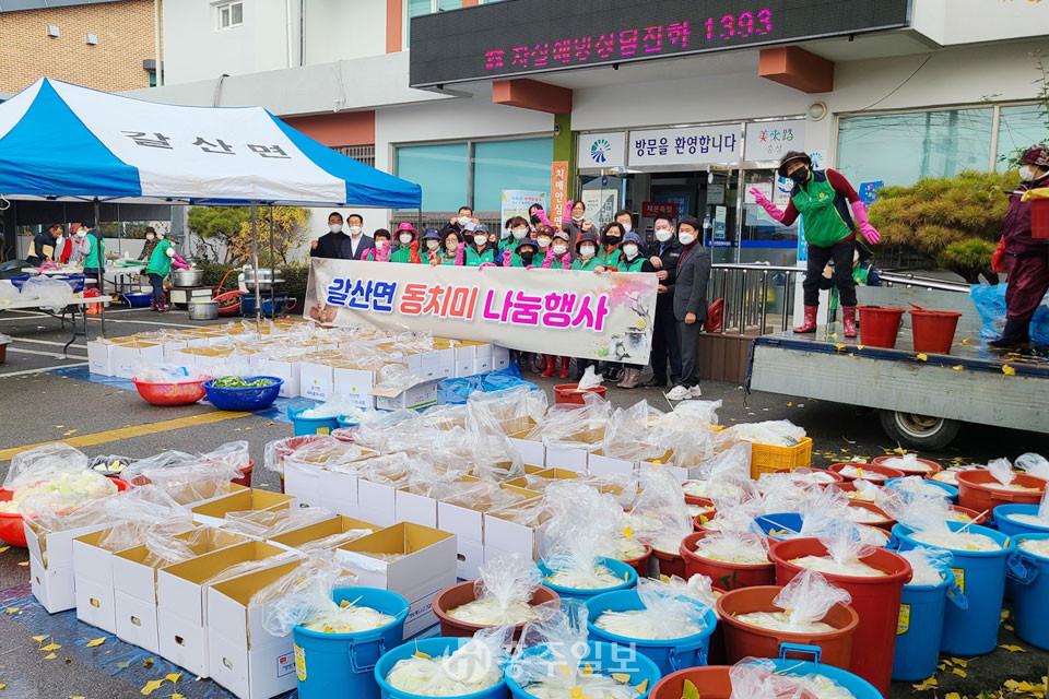 지난 18일 갈산면 행정복지센터 앞은 ‘사랑의 동치미 담그기’ 봉사활동에 참여하기 위해 찾아온 새마을부녀회, 마을주민들로 이른 새벽부터 북적였다.