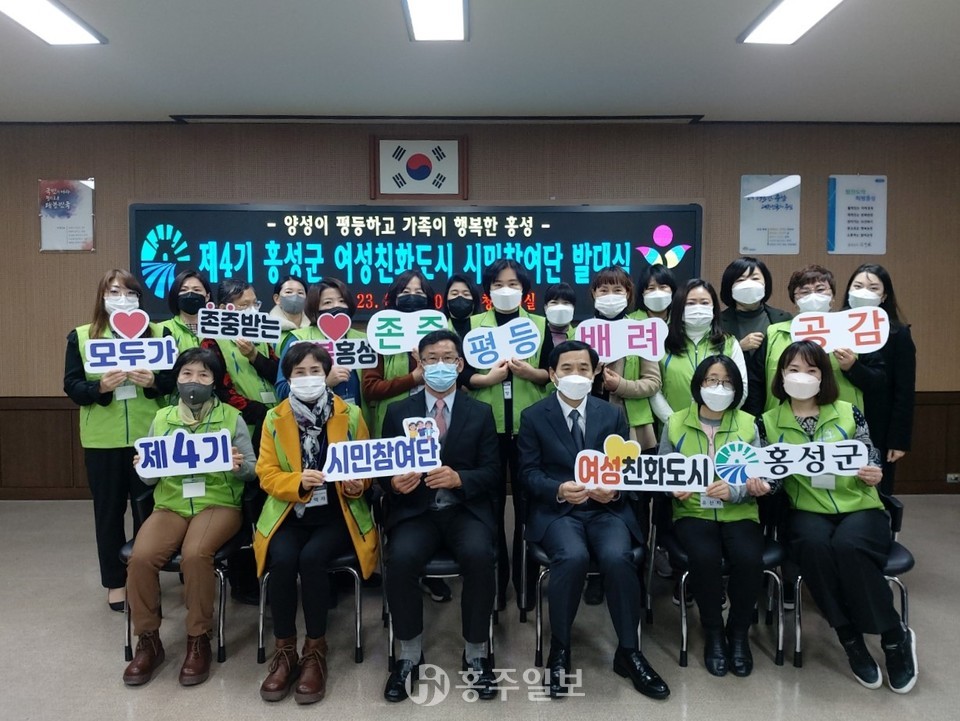 홍성군이 지난 23일 군청 회의실에서 제4기 여성친화도시 시민참여단 발대식을 개최하고, 공개모집으로 선발된 20명을 시민참여단으로 위촉했다.<사진>