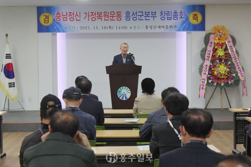 충남정신 가정복원운동 홍성군본부(본부장 오수영)가 주최·주관하고 홍성군, 홍성경찰서, 홍성교육지원청이 후원한 ‘충남정신 가정복원운동 홍성군본부 창립총회’가 지난 18일 오후 2시 홍성군 새마을회관 대회의실에서 개최됐다.<사진>