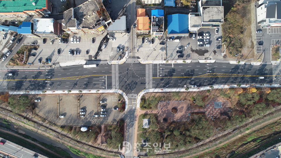 홍성읍 대교공원 인근 교차로 교통 개선사업이 완료됐다. 군은 총 6억 원(도비 2억 원 포함)의 예산을 투입해 지난 5월부터 교차로 개선사업을 추진해왔으며, 대교공원 인근 비보호 좌회전부에 전용 좌회전 차로를 별도로 설치했다.<사진>