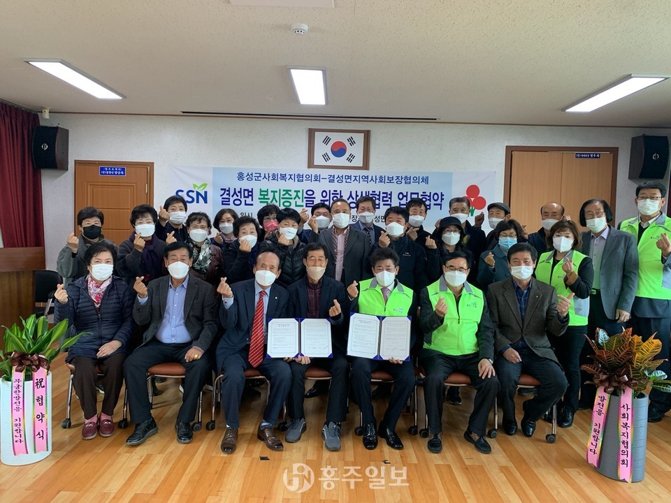 결성면 지역사회보장협의체(민간위원장 고중섭)와 홍성군사회복지협의회(회장 김영만)가 ‘결성면민의 복지증진을 위한 상생협력 업무협약’을 체결했다.<사진>