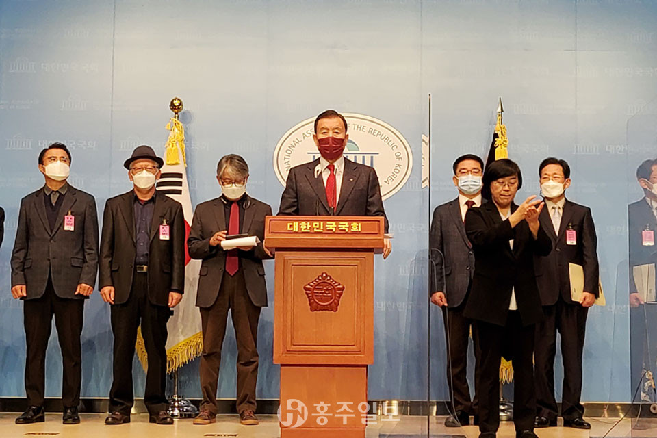 홍문표 국회의원(국민의힘, 홍성·예산)은 충남혁신도시범도민추진위원회와 함께 지난달 24일 오전 11시 국회 소통관에서 ‘충남내포혁신도시 공공기관 이전 촉구 기자회견’을 열었다.<사진>