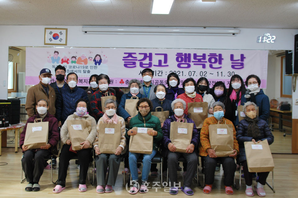 홍성사회복지관(관장 오왕근)은 충남공동모금회(사랑의열매)와 한국서부발전(주)의 지원으로 지역 사회 보호 대상 어르신 20여 명을 선정해 지난 7월부터 11월까지 우울감 해소를 위한 ‘즐겁고 행복한 날’ 프로그램을 진행했다.<사진>