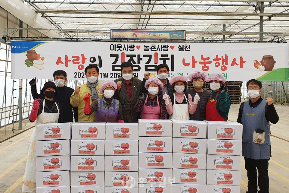 서부농협 농가주부모임(회장 이미영)이 지난달 20일부터 21일까지 서부농협 육묘장에서 이틀간 300포기 김장을 실시해 서부면내 영농회별 경로당, 독거노인, 기타 관공서 등에 60박스를 배부했다.