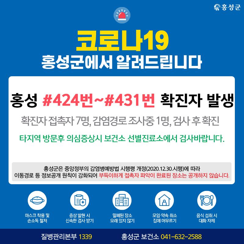홍성 #424번 - #431번 확진자 발생