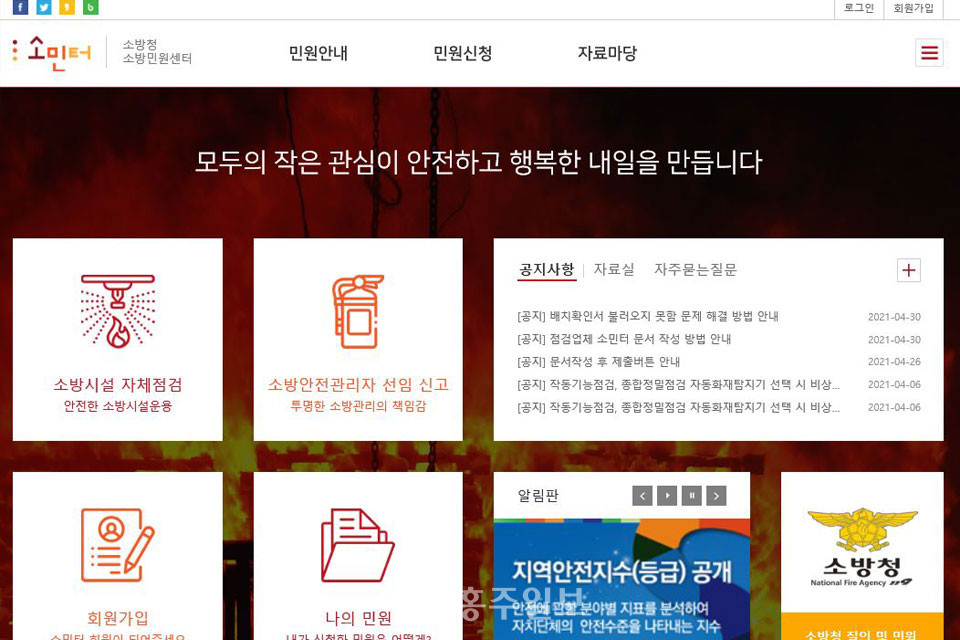 인터넷으로 소방 민원 서비스 이용할 수 있어