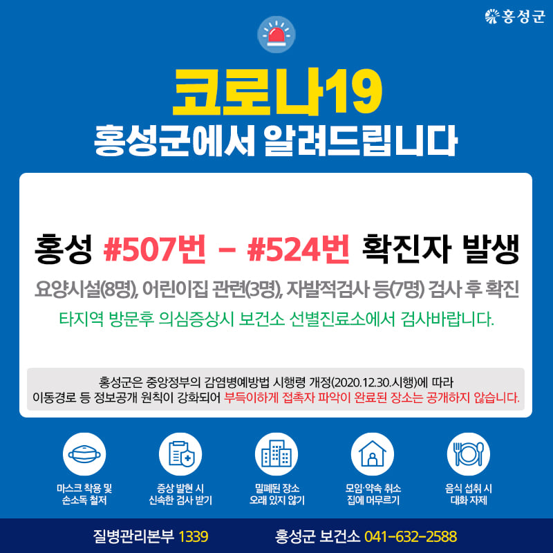 홍성 #507번 - #524번 확진자 발생