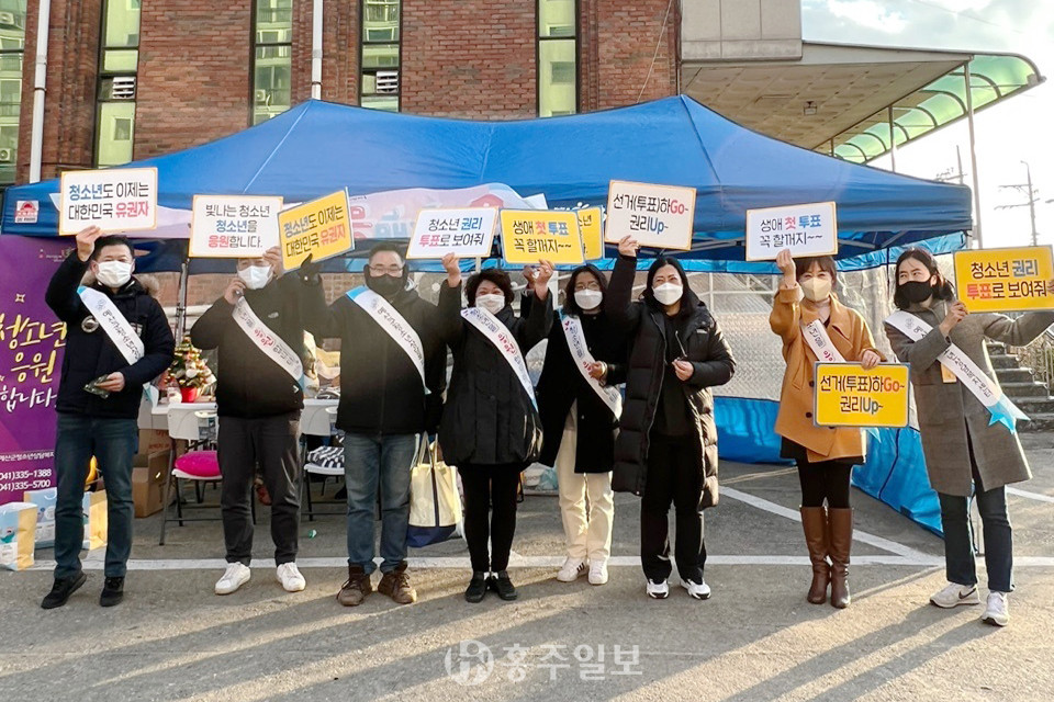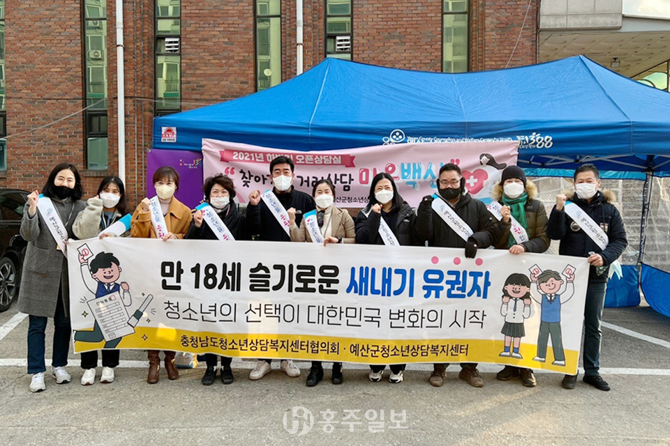 예산군청소년상담복지센터(센터장 정선경)는 지난 2일 예산읍 산성리 일원에서 1388청소년지원단과 함께 청소년 권리 찾기 ‘너도 유권자다’ 캠페인을 펼쳤다.<사진>