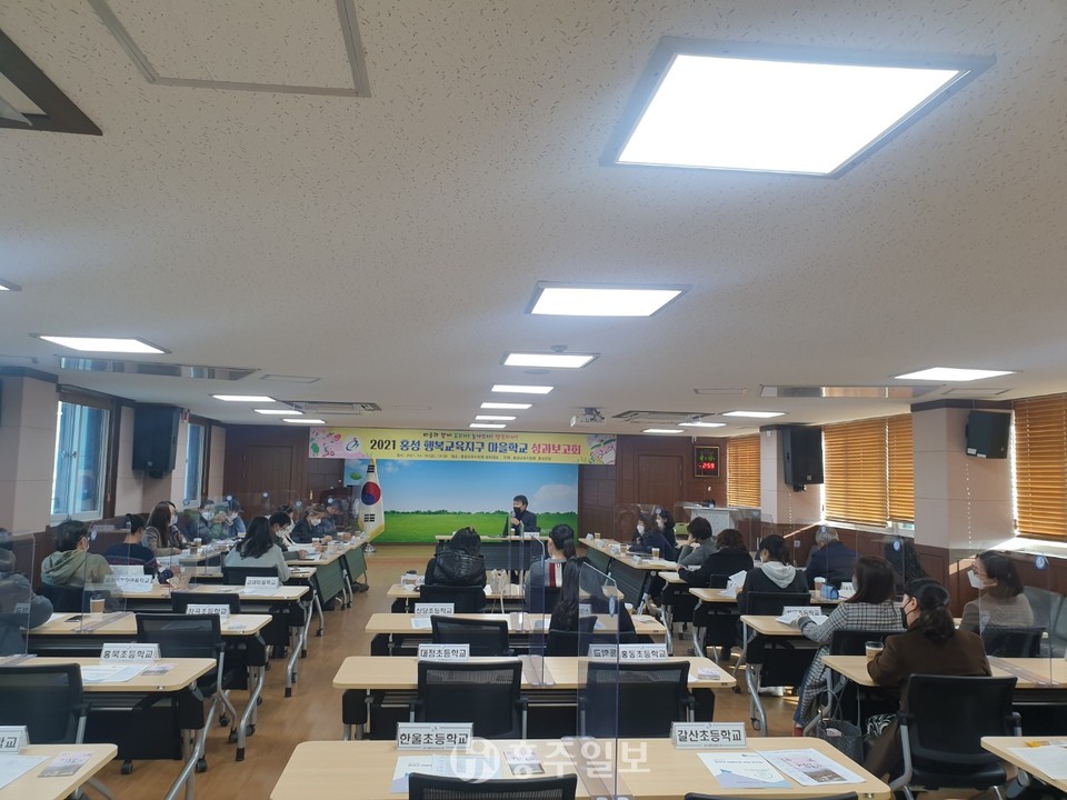 홍성군은 지난 10일 홍성행복교육지구사업 4년 차를 맞이해 그간 성과의 보고·공유를 위한 ‘홍성행복교육지구 마을학교 중간성과보고회’를 홍성교육지원청 대회의실에서 개최했다.