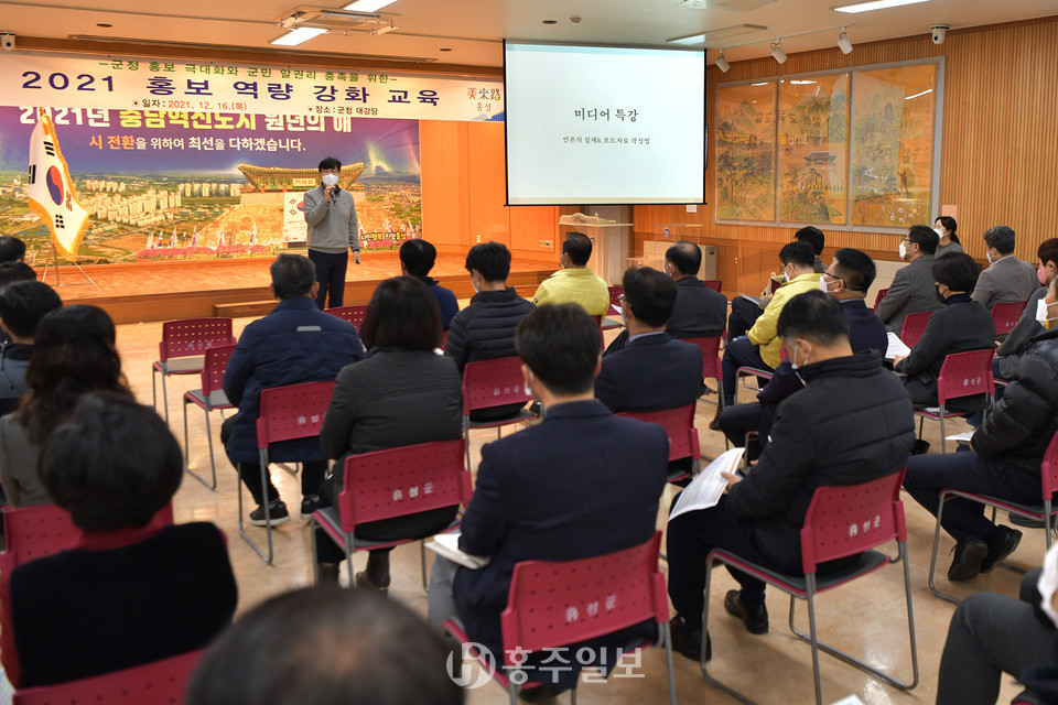홍성군이 16일 군청 대강당에서 각종 군정 시책의 신속·정확한 전달과 홍보를 통한 이미지 제고를 위해 전 공직자를 대상으로 군정홍보역량 강화 교육을 실시했다.<사진>