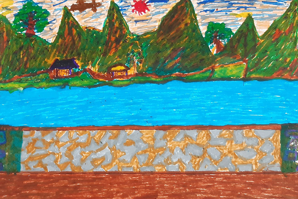 천석성 어르신은 뱀을 그리지 않으셨다. 냇물과 산, 하늘과 해를 그리셨다. 그냥 평화로웠던 옛날의 어느 한 때를 그리시는 것 같았다. 그래도 장창주 어르신은 뱀 이야기를 이어가셨다. 옛날에는 뱀을 집주인으로 여겨 함부로 죽이거나 해를 가하지 않았다고 하셨다. 집주인인 뱀을 해치면 집안에 흉한 일이 생긴다고 하셨다. 구렁이가 무사히 담을 넘어 나가도록 비손 하던 극 중 부인의 마음을 이제야 알 것 같았다.