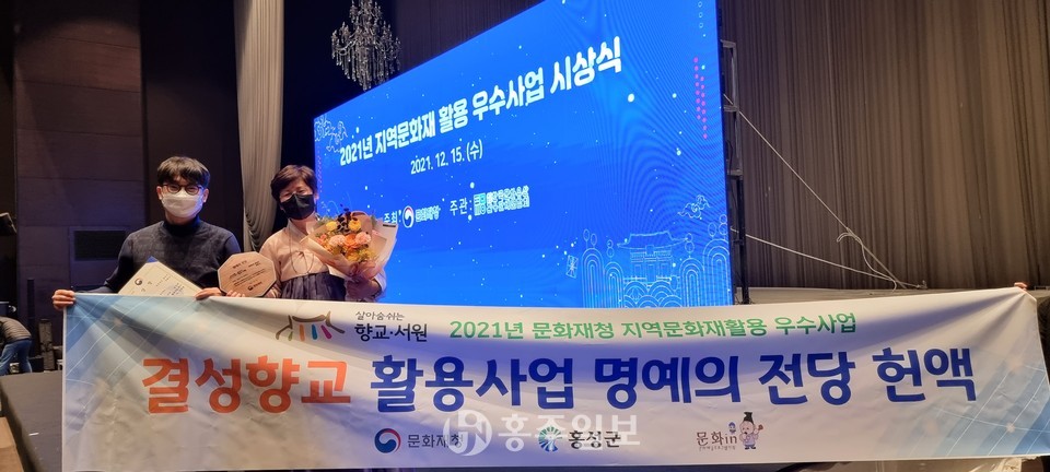 홍성군과 운영단체인 문화IN은 이번 ‘2021년 지역문화재활용 우수사업’에서 우수기관으로 선정돼 문화재청장상을 수상하고, 3년 연속 선정으로 명예의 전당 상패를 함께 받았다.