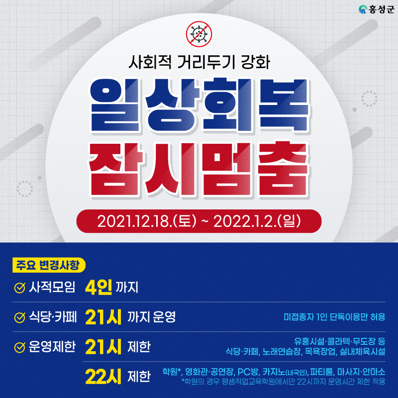 식당·카페는 21시까지 운영 및 미접종자 1인 단독이용만 가능,