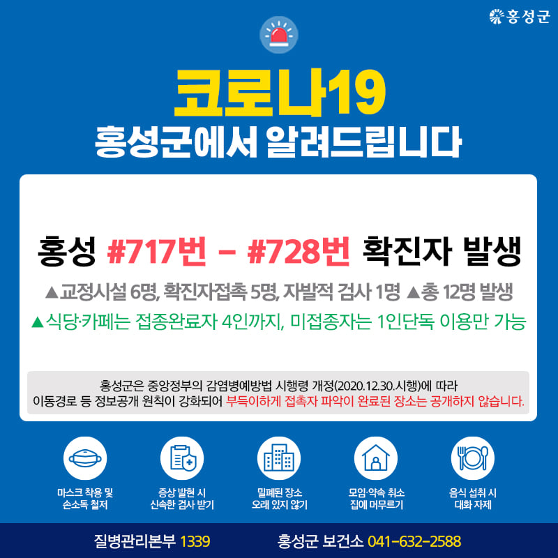 홍성 #717번 - #728번 확진자 발생