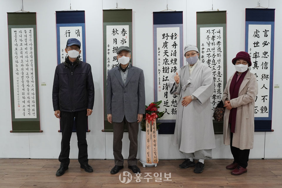 홍성군노인종합복지관(관장 육통스님)은 한 해 결실을 모아 지난 14일부터 15일까지 홍주문화회관 전시실에서 이틀간 제20회 건묵서예회원전시회를 진행했다.<사진>