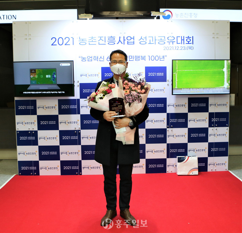정용갑 홍성군농업기술센터 소득작물팀장이 농촌진흥청이 주관하는 ‘2021년 한국농업기술보급대상’ 농촌지도 분야에서 지역농업 발전에 기여한 공로를 인정받아 대상을 수상했다.<사진>