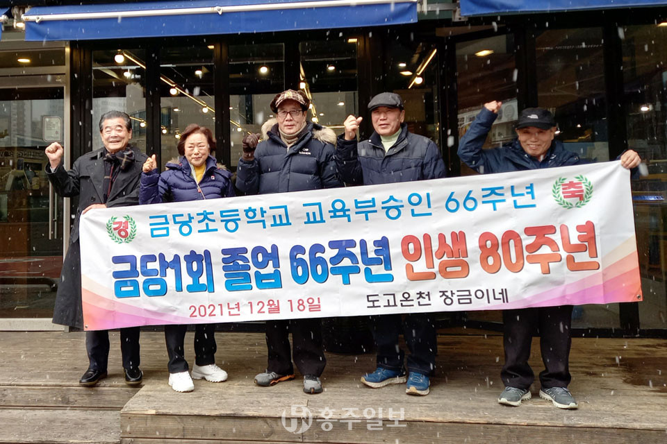 금당초등학교 제1회 졸업생으로 구성된 모임 ‘금우회(회장 장인웅)’가 지난 18일 서울 사당동 소재 한 식당에서 올해 졸업 66주년과 함께 맞이한 인생 80주년을 기념하기 위한 ‘팔순잔치 행사’를 개최했다.