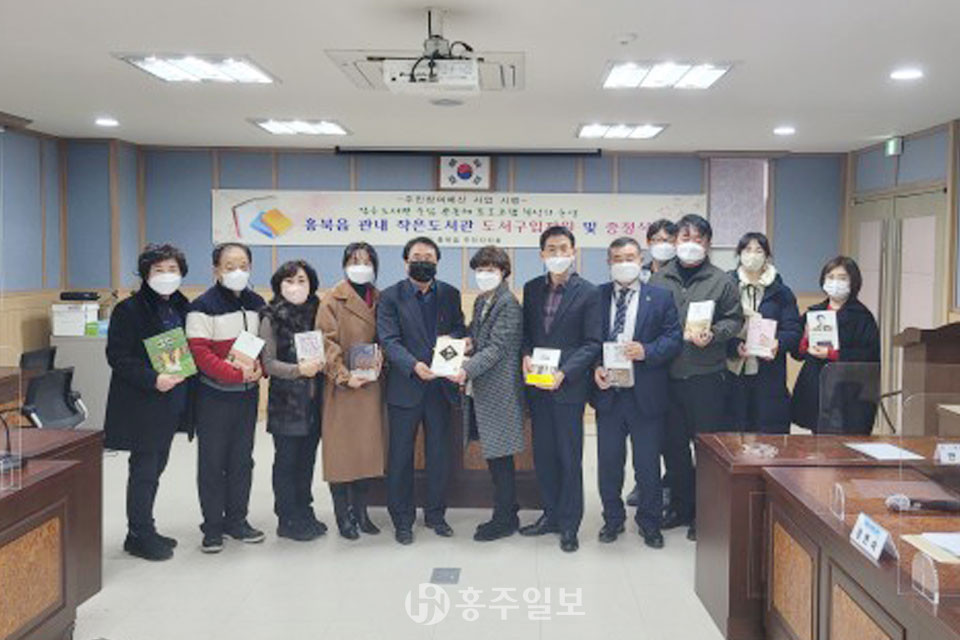 이번 도서 증정식은 2021년 주민참여예산으로 선정된 ‘작은도서관 중심 공동체 프로그램’의 일환으로 홍북읍주민자치회는 읍내 작은도서관 7개소에 각 100여 권씩 총 700여 권의 책을 증정했다.
