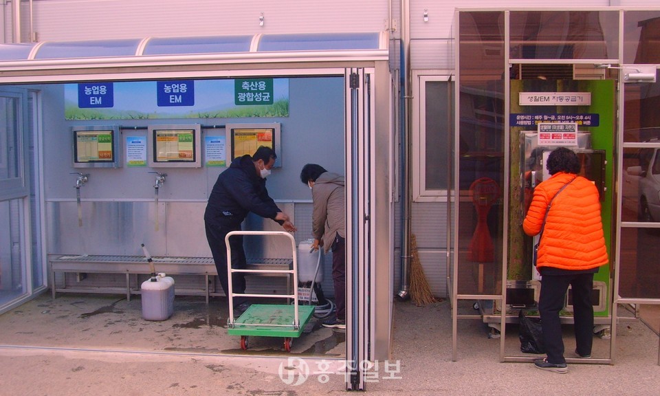센터는 미생물의 성장상태에 따라 △농업용EM과 축산용광합성균(매주 화·수·목 09:30~16:00) △축산용생균제(매주 화 09:30~11:30) △농업용클로렐라(매주 목 09:30~11:30) △생활용EM(매월 초 1~4일 09:30~16:00 코인 수령 후 자판기 상시 이용) 등을 공급하고 있다.