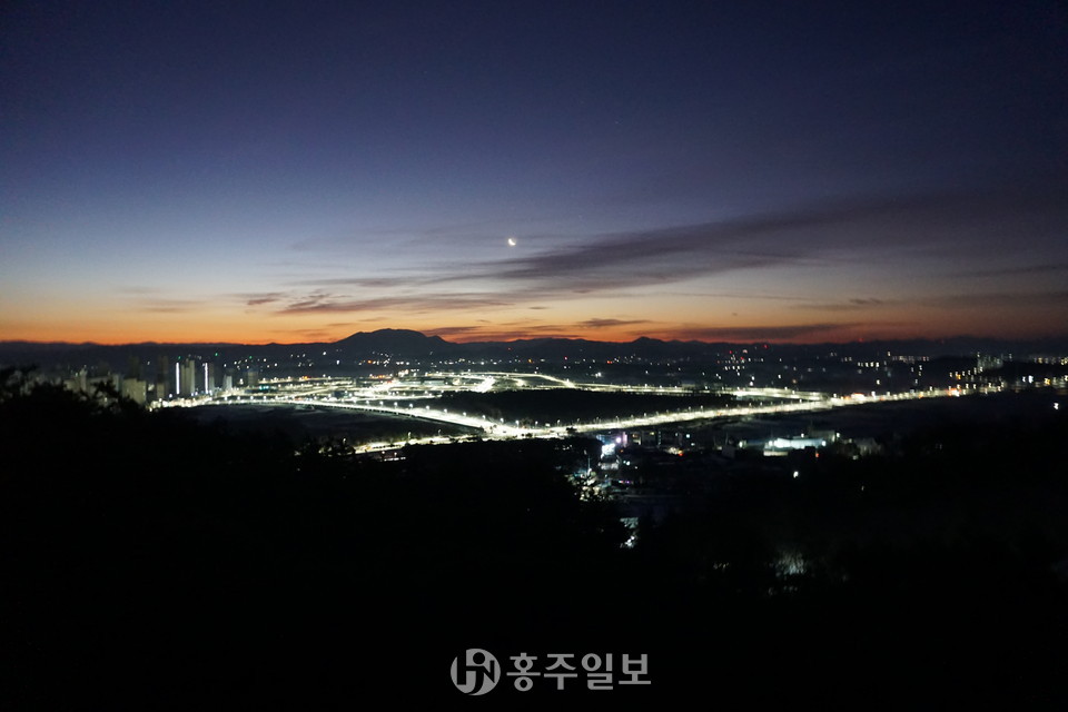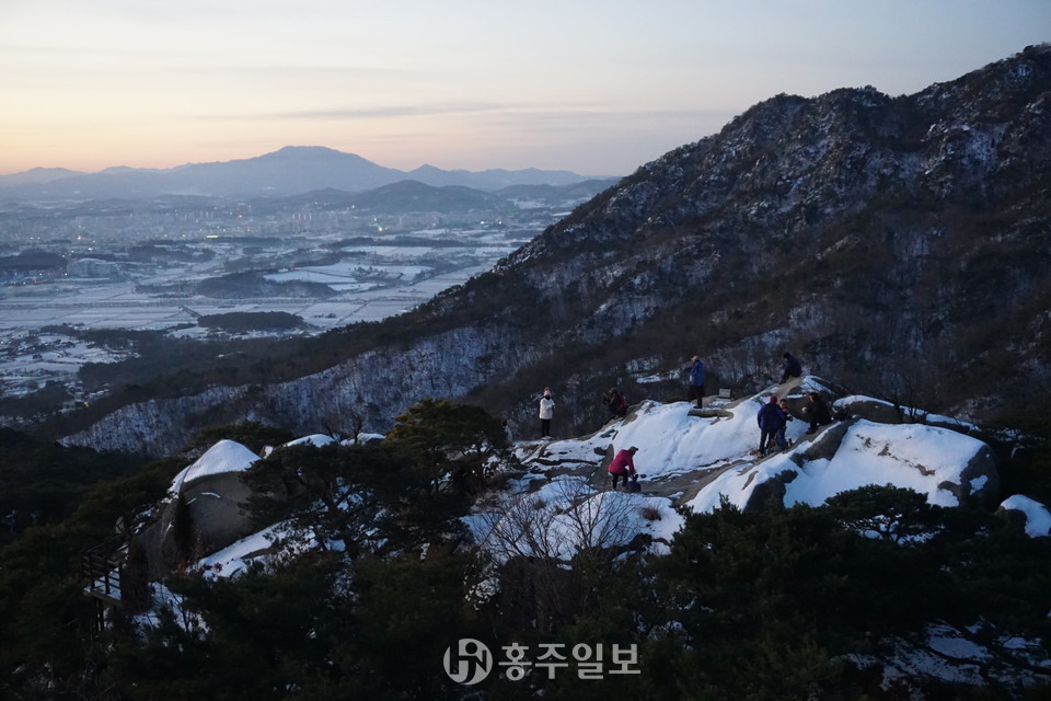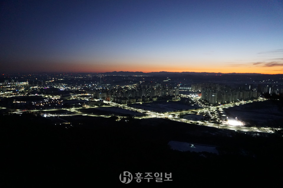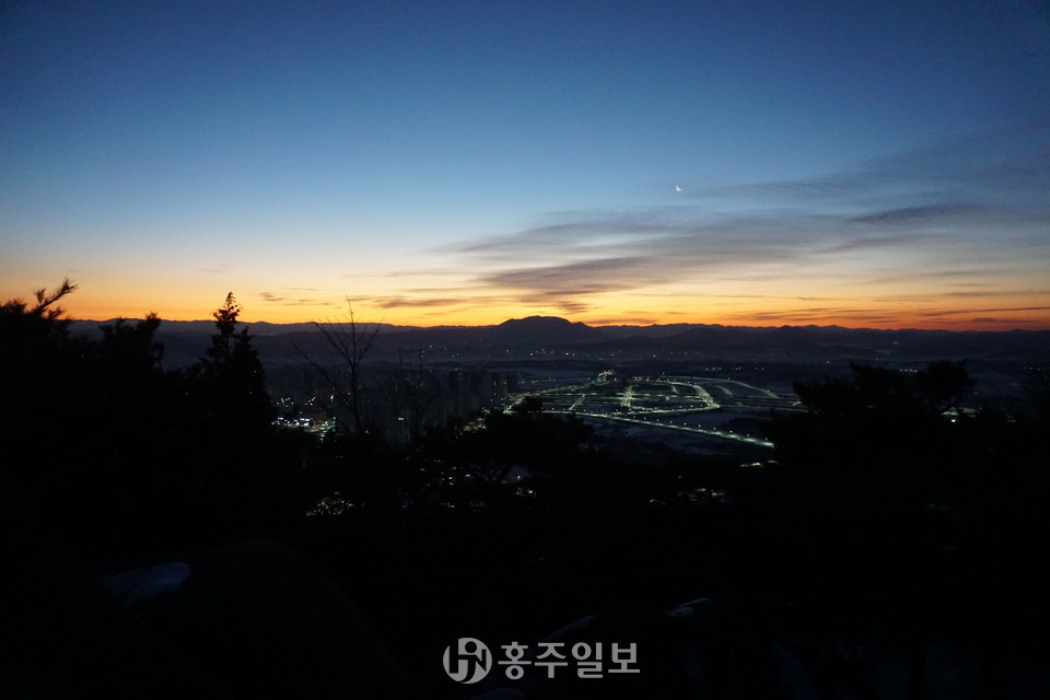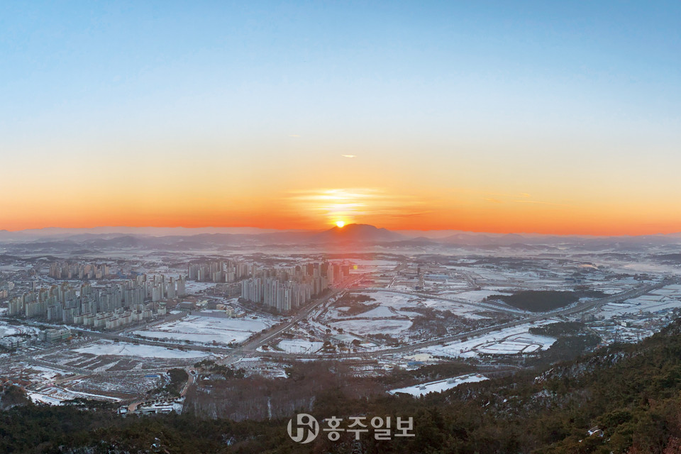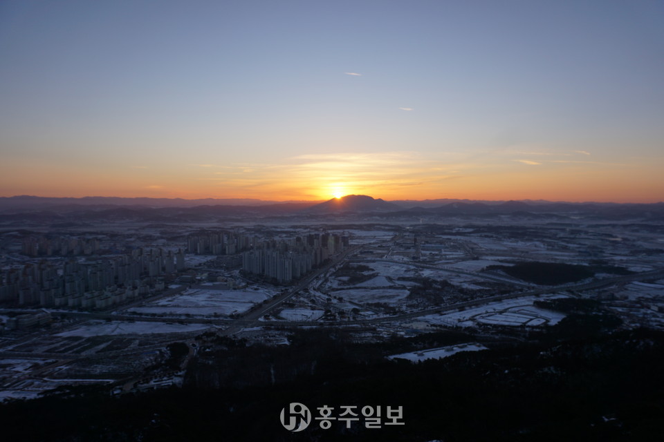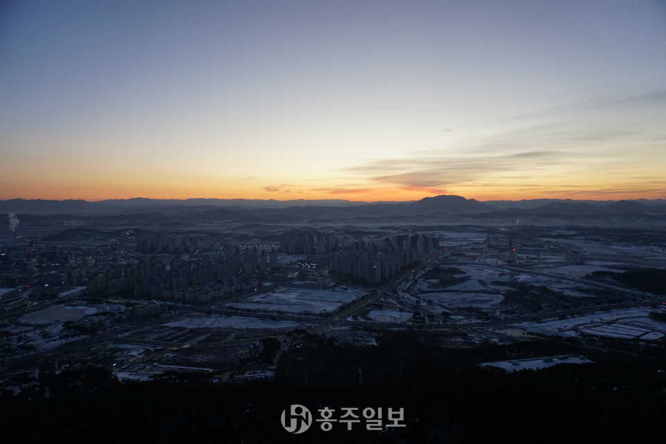 ‘검은 호랑이, 흑호(黑虎)’의 해, 임인년(壬寅年) 새해가 밝았다. 올해도 많은 군민들과 전국에서 모인 사람들이 홍성의 일출명소인 용봉산에 모여 떠오르는 첫 해를 바라보며 새해 각오를 다지고 저마다의 소망을 빌었다. 사진은 새해 첫날 해가 뜨기 전 용봉산을 오르며 내려다 본 충남내포혁신도시의 모습과 용봉산 병풍바위에서 바라본 새해 첫 일출 모습.